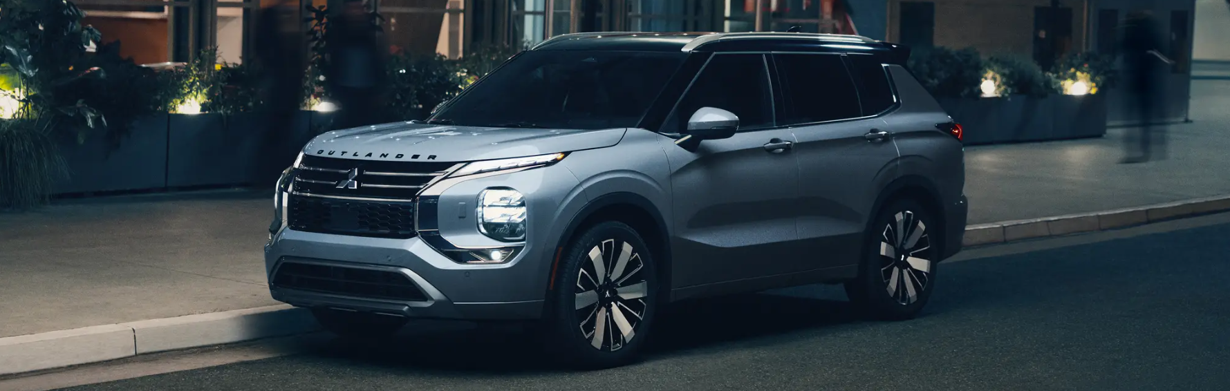 Illuminate local backroads in a modern manner with the Outlander’s standard LED headlights, daytime running lamps, and optional LED fog lights. The back of this model follows this design characteristic with full LED combination taillights, which are underscored by a standard rear privacy glass that rests above them. Help this vehicle take on a taller stance with optional 20-inch two-tone alloy wheels, which make its profile look mightier and more memorable. Optional silver roof rails supplement its road presence on I-95 while also supporting outdoor equipment, all without jeopardizing interior room.